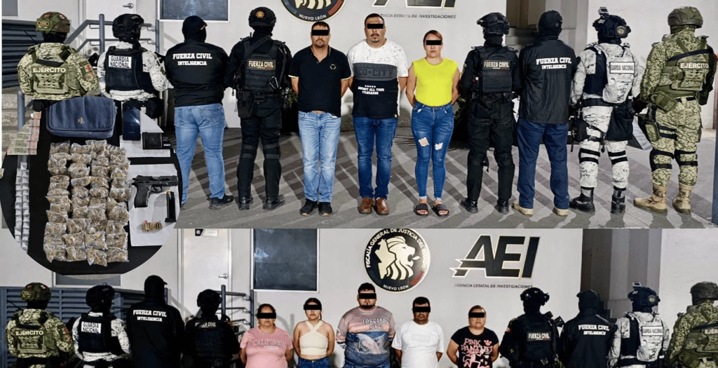 Apodaca, Nuevo León, 01 de septiembre de 2025 — En dos operativos simultáneos realizados en el municipio de Apodaca, elementos de la División de Inteligencia de Fuerza Civil y el Grupo de Coordinación Metropolitana detuvieron a ocho personas señaladas como integrantes de un grupo delictivo dedicado a generar violencia en las regiones Citrícola y Sur del estado.